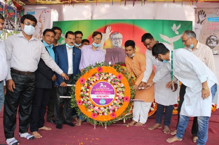 বটতলা চত্তর, জেলা প্রশাসকের কার্যালয়ে বঙ্গবন্ধুর প্রতিকৃতিতে ১৭ মার্চ সসংস্থার পক্ষ থেকে ফুল দিয়ে শ্রদ্ধা জ্ঞাপন করা হয়।